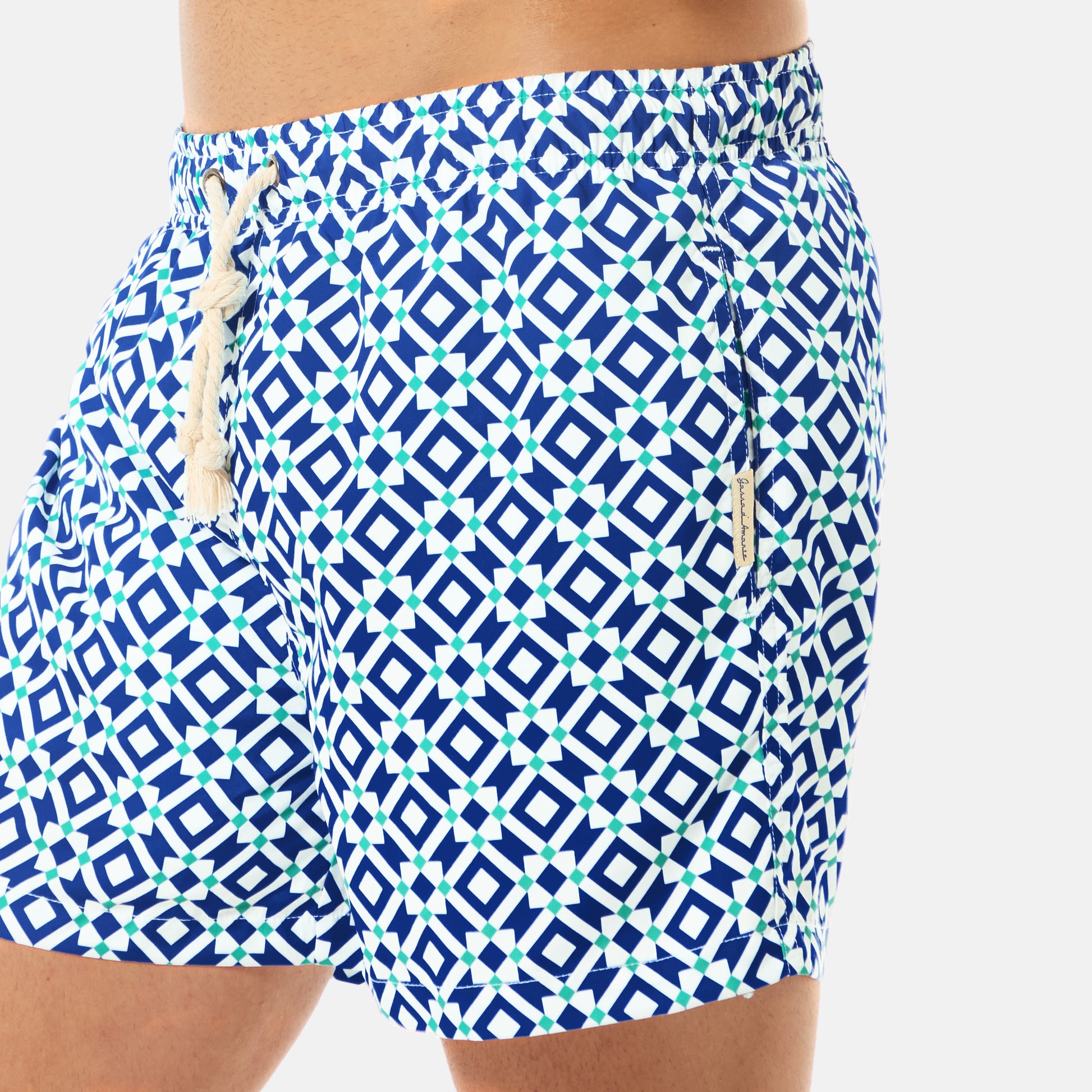 Sustainable men's swimwear made from high-quality 100% recycled polyester fabric made from recycled plastic.