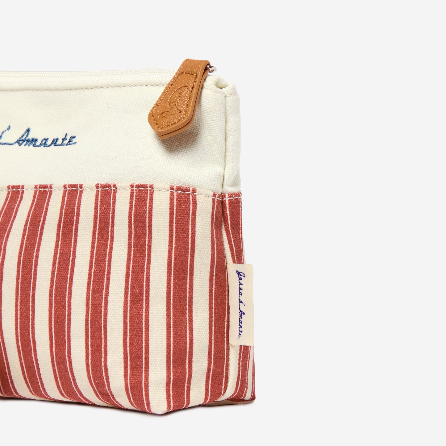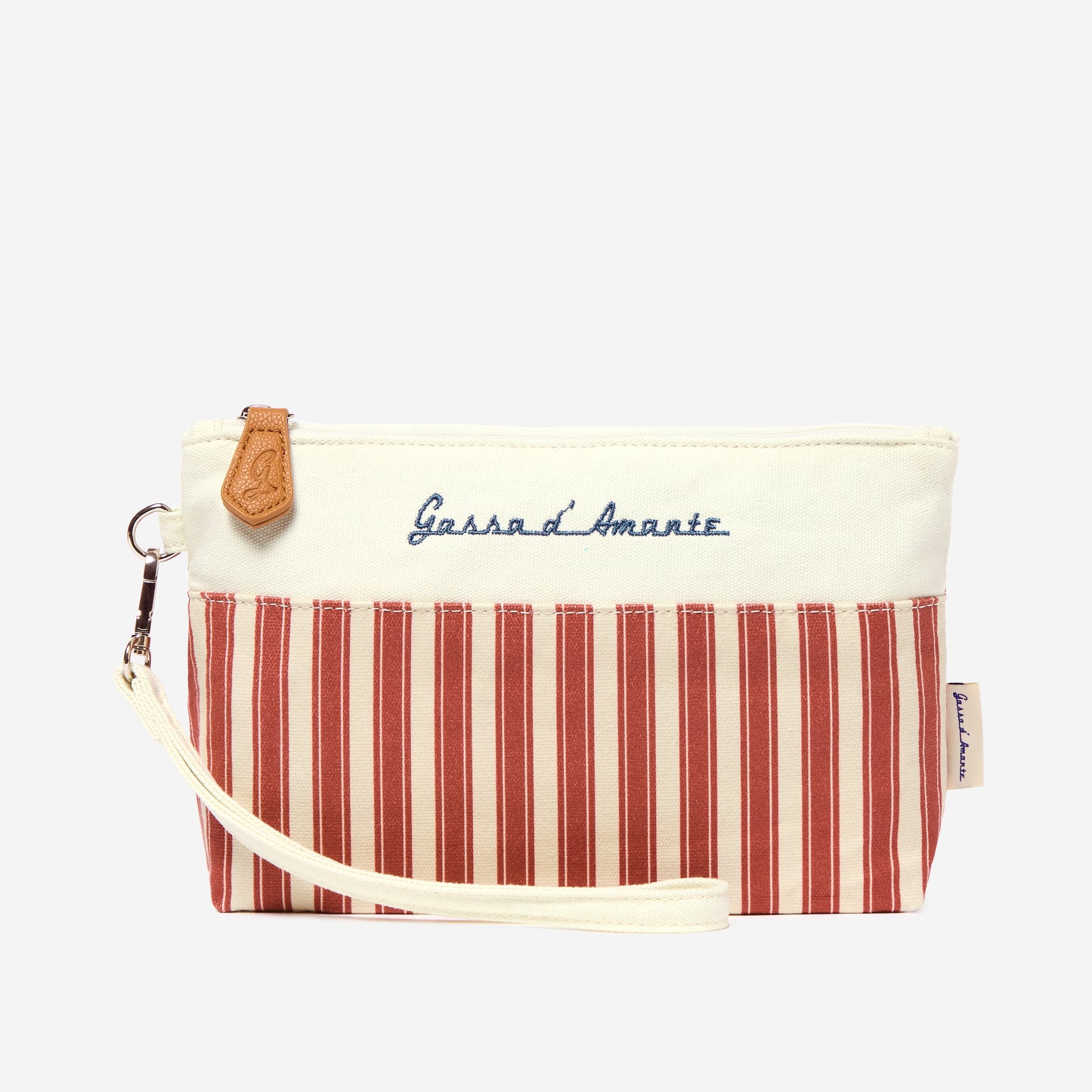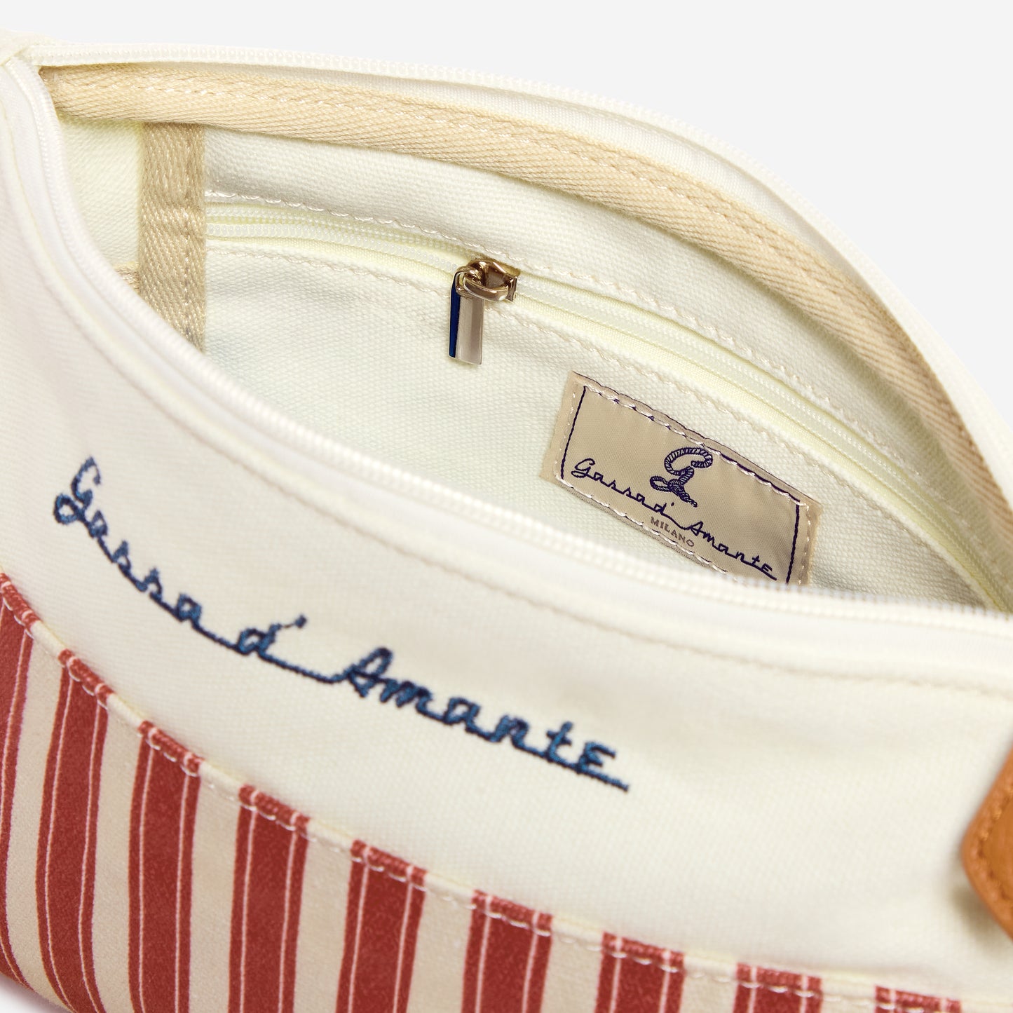 Fermeture zippée et curseur avec cordon en coton qui rappelle le thème classique "corde nautique" de Gassa d'Amante.