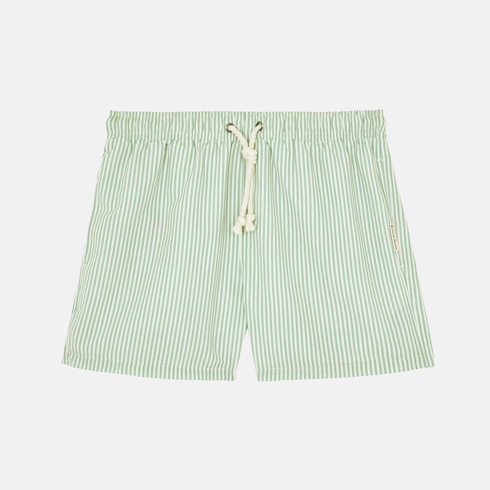 Totalmente cucito a mano, possiede una corda classica nautica in cotone, un’etichetta ricamata posta sul retro del costume e una doppia tasca laterale.