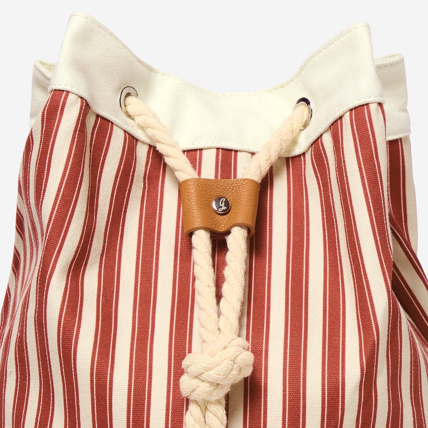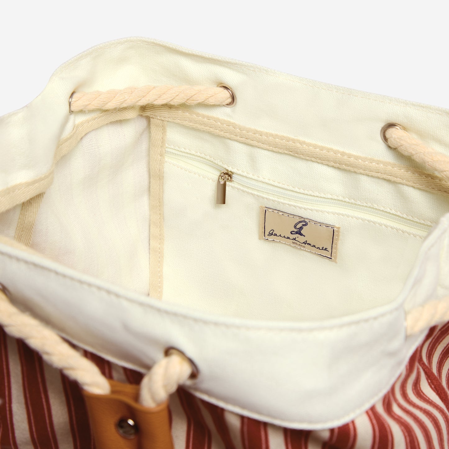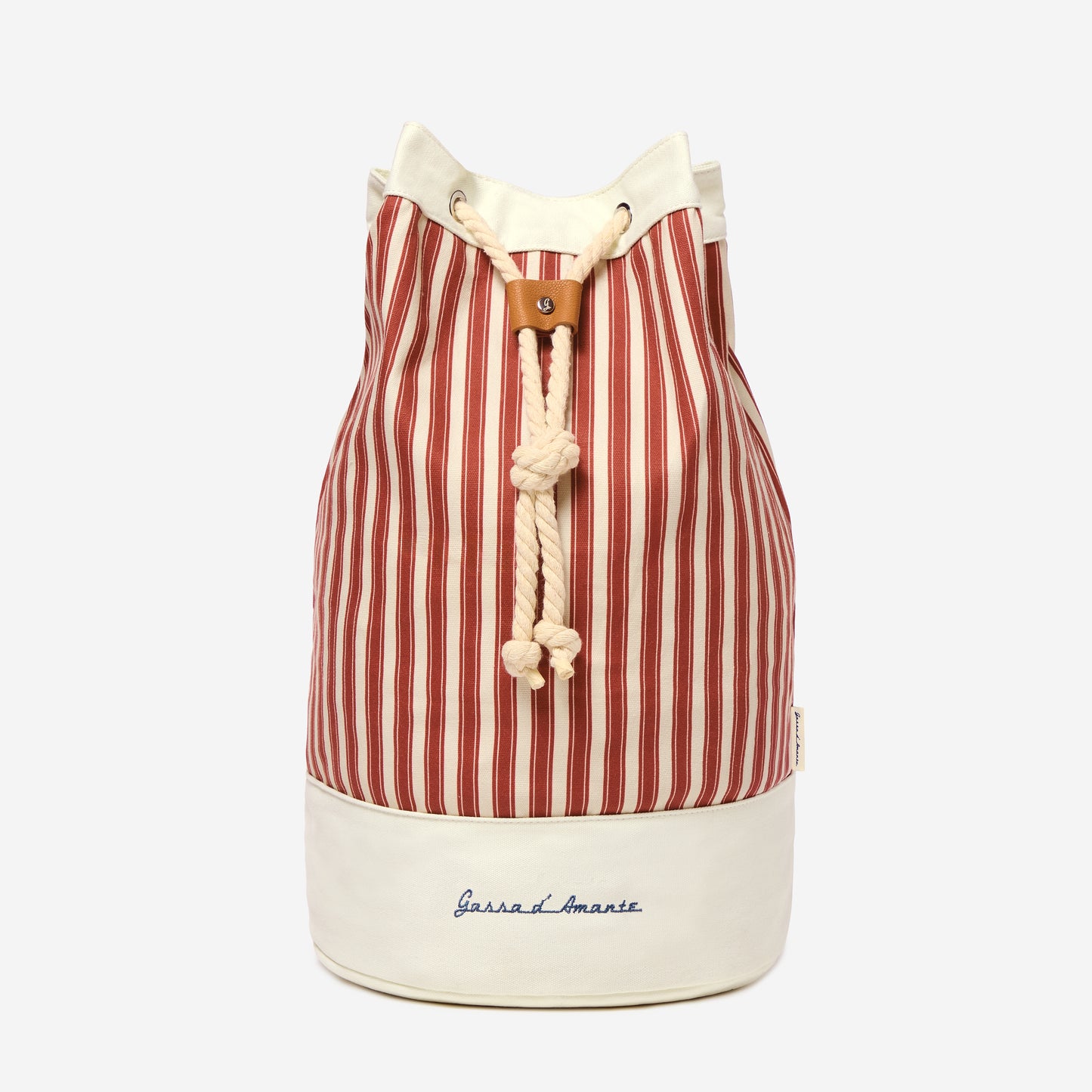 Totalmente cucita a mano, possiede una tracolla in cotone regolabile in lunghezza e una chiusura "a sacca" che riprende il classico tema "corda nautica" di Gassa d'Amante.