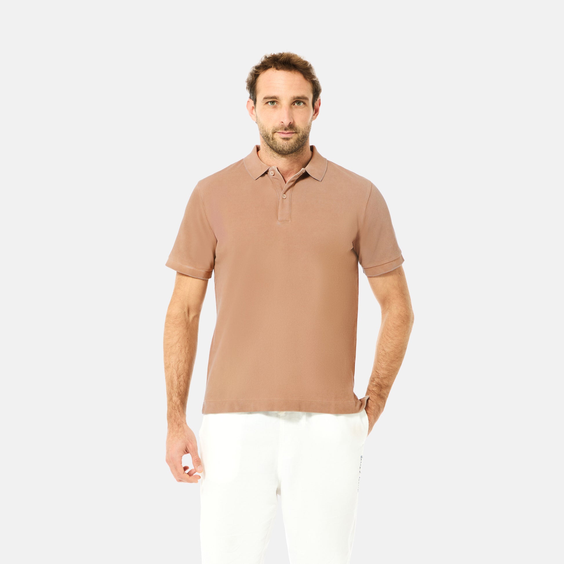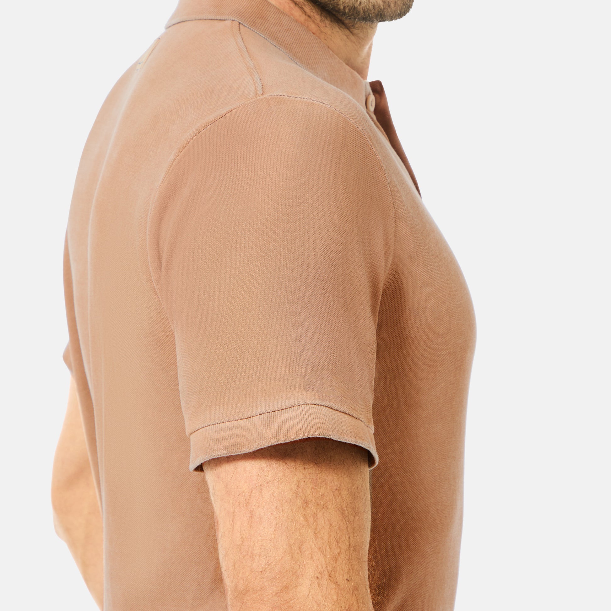 Polo realizzata con tessuto piquet 100% cotone organico e tinto in modo naturale, tramite un processo artigianale effettuato in Veneto, Italia, con un profondo rispetto per l’ambiente;